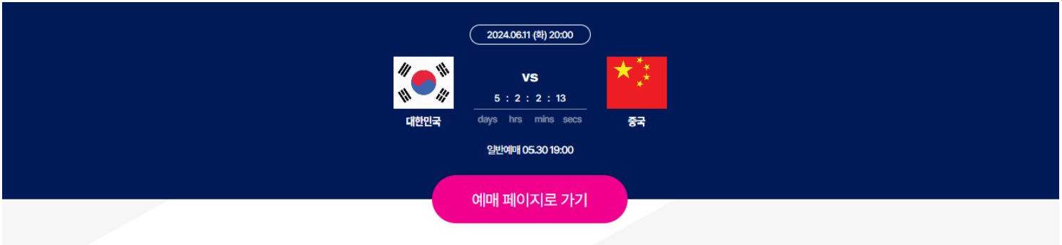 ⬇️한국 대 중국 축구 경기의 티켓을 예매하고 싶다면 아래 링크를 클릭해주세요.⬇️